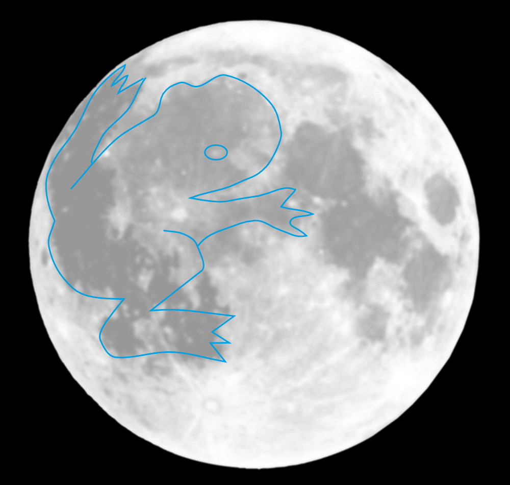 Kiinalaiset hahmottavat jäniksen käpäläksi Oceanus Procellarumin Kuun itäisten merien toimiessa päänä ja korvina. Mare Imbrium nähdään jäniksen kantamuksena.