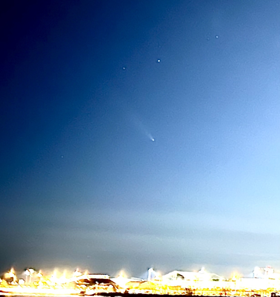 Ei ihan näkynyt paljaalla silmällä, mutta kiikareiden läpi erottui todella todella, kun sen löysin. Havaintoaika jäi aika lyhyen kun komeetta meni puiden taakse, ja ohuet pilviraidat saivat komeetan katoamaan näkyvistä pari kertaa