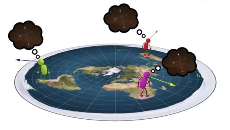 Ajatellaan, että kaksi havaitsijaa katselee yöllä kohti etelää. Havaitsija yksi on Etelä-Amerikan kärjessä ja toinen Australiassa. He näkevät molemmat Etelänristin tähdistön, samaan aikaan. Jos oletamme Maan olevan pannukakku, nämä kaksi havaitsijaa katselevat täysin eri suuntiin ja siitä huolimatta, katselevat samoja tähtiä!