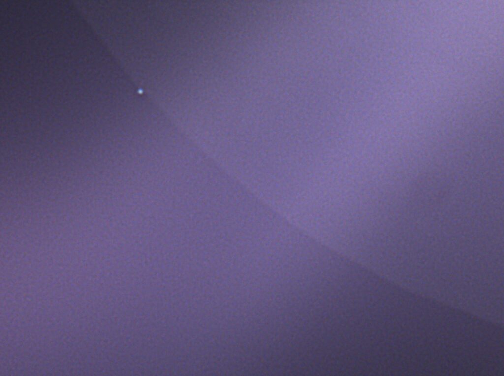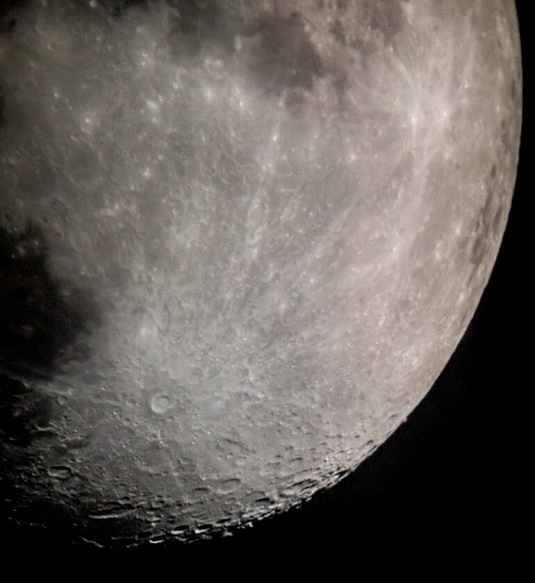 - Kuva 11: Neptunus peittymässä Kuun pimeän reunan taakse 5.1.2025 Vantaan Pähkinärinteessä, kuva klo 16.40. Neptunus peittyi Kuun taakse klo 16.41.08. Sky-Watcher Skymax 27 (Mak127/1500), kamera ZWO ASI224MC. Kuva: Paula Wirtanen.