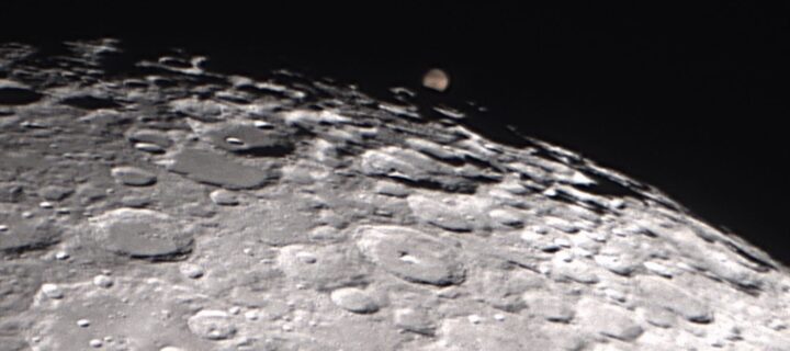 - Kuva 17. Kuu ja Mars peiton päätyttyä klo 21.48. Sky-Watcher Skymax 127 (Mak127/1500), kamera ZWO ASI224MC. Kuvassa etelä ylhäällä. Kuva: Paula Wirtanen.