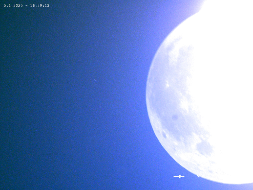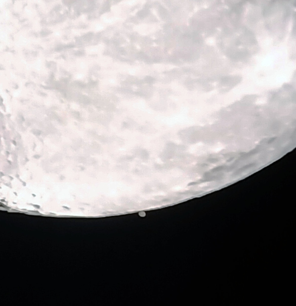 - Kuva 9. Neptunus peittymässä Kuun taakse Kangasalla 5.1.2025 klo 16.39.13. Jorma Mäntylä.