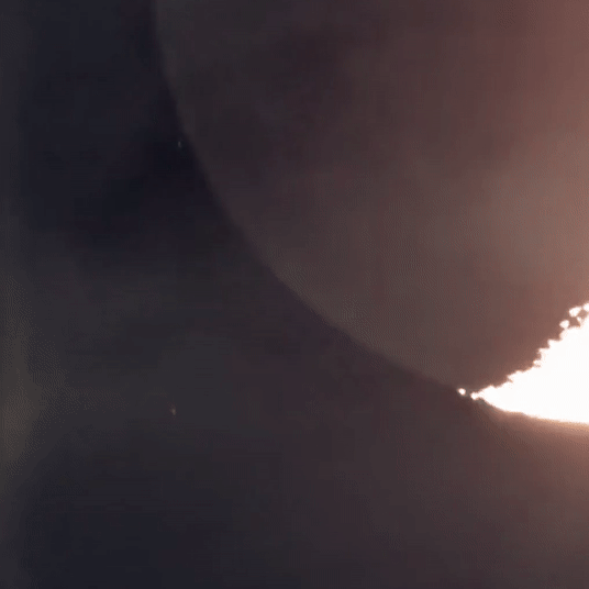 Kuva 7. Animaatio Saturnuksen esiintulosta Fregenal de la Sierrassa, Espanjassa kello 20.16–20.30. Saturnus on Espanjan taivaalla kulkenut Kuun takana huomattavasti eteläisempää linjaa kuin Suomen taivaalla. Sky-Watcher Esprit 100ED, kamera: Atik 460EX, Ha-suodin, 25×0,01 s. Kuva: Tapio Lahtinen.