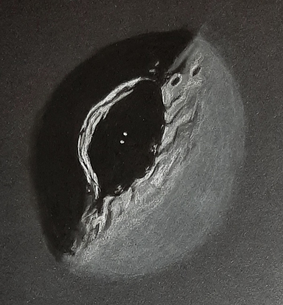 Johanna Rintamäki on kunnostunut etenkin Kuun yksityiskohtien tallentamisessa. Eikä millä tavalla tahansa, vaan piirtämällä! Tämän upean kuvan Jonna teki 6.1.2026 Hämeenlinnassa: