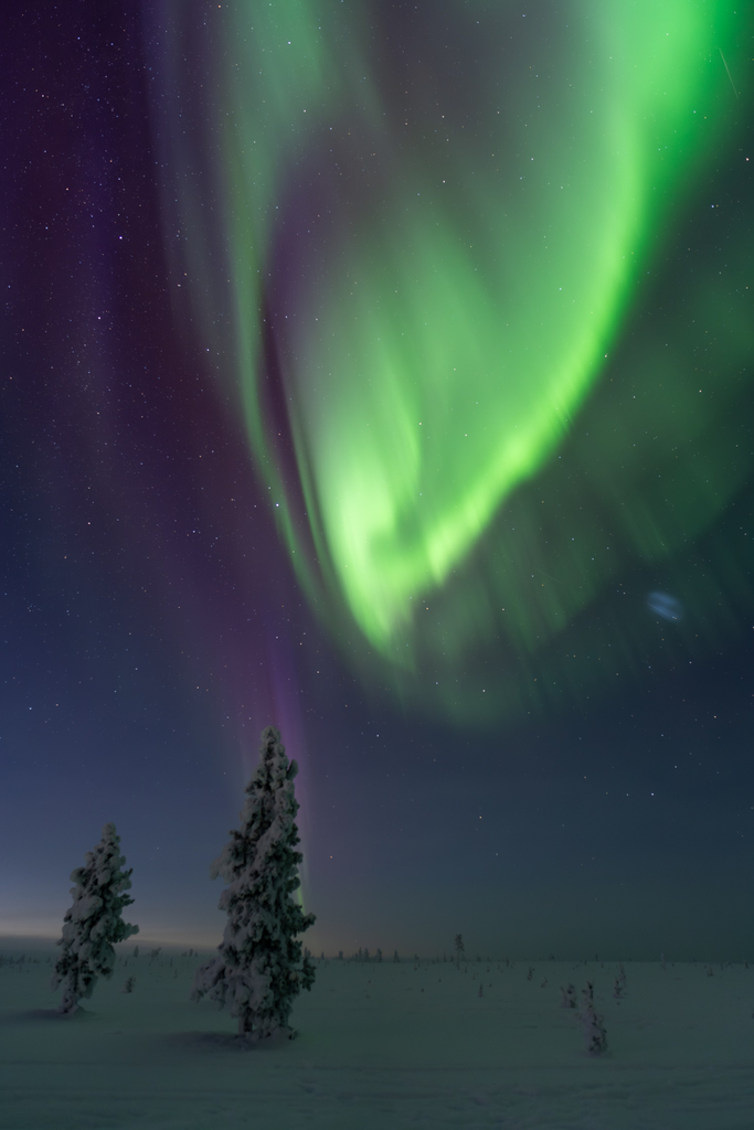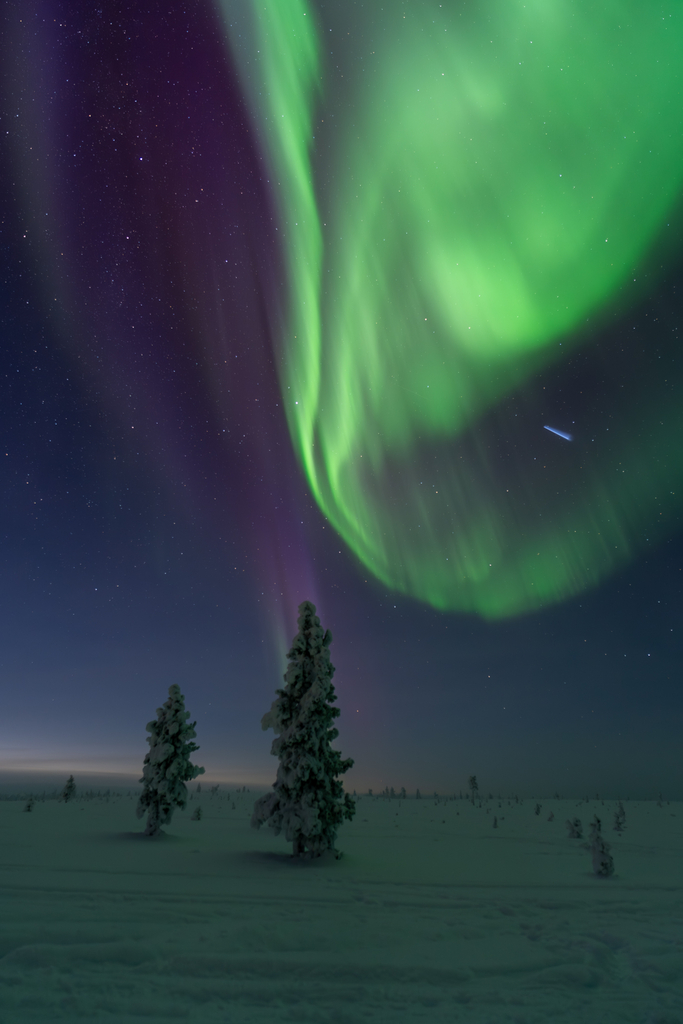 Inarin taivaalla näkyi revontulien lisäksi muunkinlaista valoilmiötä, kun SpaceX:n Falcon 9 lennähti taivaan poikki 11.1. Sen kuvasi Ilja Hernberg: