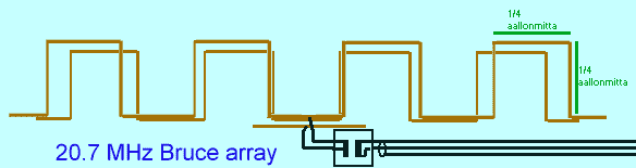 Janskyn lyhytaalloilla käyttämä pystypolaroitu Broadside-(verho)antenni oli eräs Bruce Arrayn versio. Antennirakennelma oli 30 m pitkä lankuista kasattu teline, joka pyöreällä tiilireunuksella Ford T-mallin pyörien kannattelemana kääntyi sähkömoottorin voimalla kierroksen 20 minuutissa. Sähköisesti antennissa oli kahdeksan vierekkäistä vaiheistettua neljännesaaltoelementtiä ja niiden takana toinen pidempielementtinen rivi toimi heijastajana. Vahvistusta antennilla saattoi olla n. 8...10 desibeliä yli dipolin n. 25 asteen korotuskulmaan. Vastaanottimen AGC-jännitteestä mitattu kohinataso tallentui paperipiirturin nauhalle. Ensimmäiset mittaushavainnot Jansky teki taajuudella 20,5 MHz, ja myöhemmin myös 18 MHz:llä. Sarjan viimeiset, Auringon kasvavan aktiivisuuden haittaamat kosmisen radiosäteilyn spektrimittaukset Jansky teki myöhemmin samantyyppisellä antennilla 9,3, 18 ja 20,5 MHz taajuuksilla ("Minimum noise levels obtained on short-wave radio receiving system", Proc.IRE 25, 1937), (Friis, H.T., Feldman, C.B., "A multiple unit steerable antenna for short-wave reception", Proc. IRE 25, 1937).