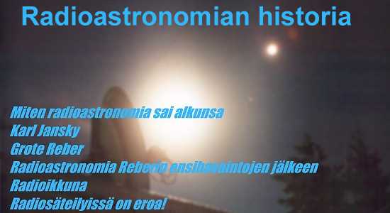 Vastaus on: tavallaan vahingossa, mutta ennen kuin tieteen ala nimeltä radioastronomia voi syntyä, piti tutkia magnetismia ja saada selville sähköilmiöiden salat ja yhdistää ne sähkömagnetismiksi. Meripihkaan kehittyvä hankaussähkö tunnettiin jo 500 eKr. ja magnetismi kompassin muodossa 1200-luvulta asti. Luigi Galvani havaitsi sähkövirran vaikutuksia sammakon reisiin vuonna 1780 ja seuraavat sata vuotta tiedemiehet tekivät kokeita sähköllä ja magneeteilla ja kehittivät kokeiden tuloksien perusteella yhtälöitä, joilla ilmiöitä voitiin mallintaa.