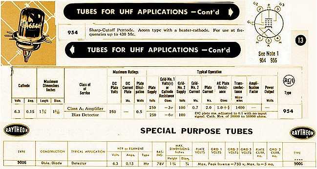 Reber käytti juuri näitä radioputkia vastaanottimessaan, 954 pentodeja vahvistimina ja 9006 diodia ilmaisimena.