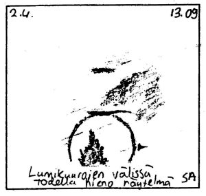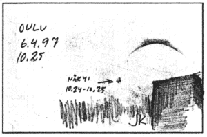 Oulun seudun ainoasta havainnosta vastaa aamuvirkku Sankelo, jolla 22° rengas ja sivuaurinko. Koillismaalla taivaalta havaitaan 22° rengasta kolmen havaitsijan voimin. Helenius raportoi renkaan lisänä 46 ylläsivuavan Kemijärvellä mutta jostain syystä piirros ja rastitus lomakkeella ovat ristiriidassa sillä piirroksessa on renkaan kera sivuaurinko ja ylläsivuava. Havaintokertomuksesta ei saa selvää mitä poronsarviuutetta miehet on sillä suunnalla Suomea oikein kyseisenä päivänä syöneet sillä Palojärvi tyytyy renkaan lisäksi ylläsivuavaan rasti ruutuun systeemissä mutta piirrokseen on löytänyt tiensä myös ilmiselvä 46° ylläsivuava? No, sattuuhan sitä. Aikioniemen havainto on päivän runsain sillä renkaan, ylläsivuavan ja sivuauringon lisänä taivaalla on zyk ja 46° rengas todennäköisesti päällekkäin 46° ylläsivuavan kanssa.