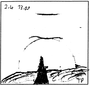 Kokkolan Penttinen korjaa päivän potin tuplaellipsillään. Savukoskella päättyy useiden mukavien näytelmien sarja. 22° renkaan ja ylläsivuavan lisäksi Aikioniemi ja Palojärvi raportoivat 46° ylläsivuavat, tosin Palojärven piirroksissa lienee jotain häikkää sillä piirroksessa ei ole mitään merkkiä 46° haloista joten olisiko 3. ja 4. päivän piirrokset/rastitukset menneet sekaisin? Heleniuksen havainnosta 46° halot puuttuvat mutta muuten havainto on samankaltainen vain myöhemmin tehty. Oulun seutu raapii pilareita Korhoselle ja Uusitalolle. Öhman näkee 22° renkaan Oulussa ja sivuauringot ja pilarin Moilasen kyydissä Pudasjärvellä, kuskina ollut Moilanen näkee myös sivuauringot mutta ohjaamisen vuoksi enempi havainnointi jää häneltä väliin.