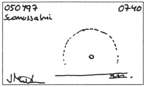 Kokkolan Martti “ellipsikide” Penttisen havainto ellipseistä on varsin tyypillinen lyhytaikainen ellipsihalojen esiintymä. Pilvityypiksi hän epäilee Ac:tä mutta varustaa kommentin kysymysmerkillä. Pilvisyyden vaihtuessa kirkkaampaan ilmaantui ellipsi valkosipuliperunoita hämmentäessä: “Oli hyvin kylmä ilma. En ensin tajunnut, että se oli ellipsi, olin kai vielä entisestä pyörällä päästäni. Taas sähläystä. Kuvasin, ja älysin vielä katsoa polarisaatiota. Siitä en löytänyt jälkeäkään. Kesto isommalla ellipsillä oli hetkellinen, kun pieni tuikkasi väliin ja taas vaihtui toisen vuoro.” Hän kertoo havaintotilanteesta. Pystysäteiksi ylöspäin hän arvioi pienemmälle 2° ja isommalle 4°. Penttisen helmikuinen jääkidereplika ellipsinäytelmästä antoi todistetta loivien pyramidikiteiden osallisuudesta ellipsihaloihin. Nyt Mika Sillanpään viime aikoina esittämien, tietokonesimulaatioihin perustuvien, kommenttien perusteella ellipsikiteissä riittää ongelmia sillä vaikuttaa että näitä pyramidikiteiden loivia huippukulmia ei olisikaan vain yksi vaan useita. Onko joskus sitten löydettävissä selviä sääntöjä pyramidikulmille? Ken tietää...