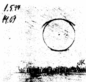 Korhosella rengas ja sivuauringot. Öhmanin rämpiminen tässä renkaan ja sivuaurinkojen tapauksessa on toisaalla tässä lehdessä kerrottu tarkemmin. Mustat lasit ovat vahingoniloisia. Kokonainen 22° rengas Penttisellä. Kyseinen halo myös Moilasen koko havainto Vaalassa. Surkean lyhyt pilari katkaisee pitkän (peräti neljä päivää!) halottoman jakson Aikioniemen havainnoissa.