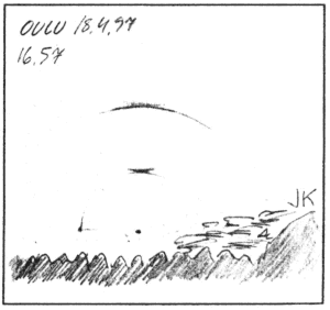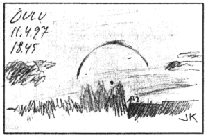 Penttisellä aamulla rengas ja sivuaurinko ja samoin Suvilla aamulla rengas, sivuauringot ja zyk, jättäen siten muun Oulun jengin tyhjin kourin taivasta tuijottamaan. Iltapäivällä Penttisellä vielä pilari. Viideltä Aikioniemellä sivuauringot 22° renkaan pätkien kera kruunattuna pitkällä zykillä. Hiukan myöhemmin pilari. Palojärvellä samoihin aikoihin näkyy ensin sivuaurinko, sitten zyk ja vielä sen jälkeen 22° ylläsivuava. Illemmalla hänellä sivuauringot ja pilari.