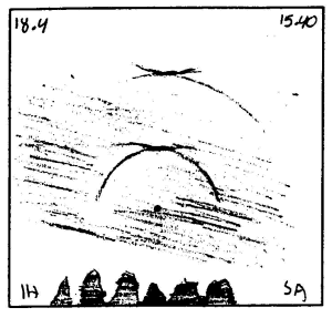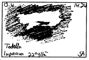 Soutukorvalta ilmoitus 22° renkaasta. Aikioniemellä ja Heleniuksella pilari illalla. Siinä oli päivän saalis niputettuna. Eräs huonoimmista halopäivistä.