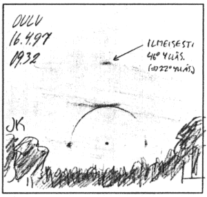 Sekä Korhosella että Öhmanilla 22° rengas. Seitsemältä illalla orpo ylläsivuava Aikioniemen lomakkeelle.