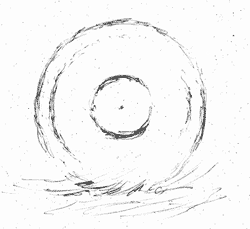 Viimeisessä Reiman piirroksessa näkyy kokonainen horisonttirengas (Fig. 12f). "Horisonttirengas näkyi muutamaan otteeseen koko matkaltaan selvänä irtokiteisenä pintana. Vastapuolella pinta oli selvästi matalammalla kuin valolähde, ja pinnan alareuna oli terävähkö ja kirkas, muodostuen lähimpien kiteiden aiheuttamista heijastumista. Kauempana olevien kiteiden välähdykset näkyivät himmeämpinä hieman ylempänä." Kertoo Reima horisonttirenkaasta. Alareunan terävyyden keinovalohorisonttirenkaalla raportoi myös Teemu Öhman aikoinaan näkemässään tapauksessa (UMi 1/2000). Herrojen havainnoissa on yksi ero, Reiman mukaan ylempänä näkyi kauempana olevien kiteiden välähdykset, kun Teemun havainnosta saa sen kuvan, että ylempänä olevat olisivat lähempänä: "Vastapuolella oli myös tuiketta, jolla terävä alareuna, mutta yläpuoli tuntui jatkuvan kai satunnaisvälkkeenä lampun puolelle asti." Alareuna näkyy terävänä sen vuoksi, että silloin katsotaan kaukana olevien kiteiden tasoon, joka on alempana kuin lamppu. Kauemmaksi mentäessä taso lähestyy horisonttia perspektiivin vuoksi, mutta sitä ei käytännössä voi tietenkään havaita, koska kidevälke heikkenee ja katoaa näkyvistä. Lähempänä havaitsijaa olevat vastapuolen kiteet näkyvät puolestaan ylempänä kuin kaukana olevat kiteet ja koska kidetaso on lähempänä havaitsijaa, kidevälke näyttää harvemmalta. Toisin sanoen, vastapuolella aivan silmän lähellä olevan kiteen välähdys näkyy samalla korkeudella kuin lamppu on, kun taas kaukana olevan kiteen välähdys näkyy alempana mitä lamppu.