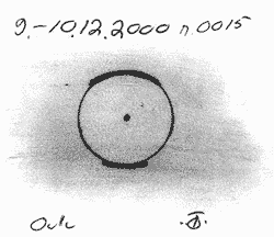 Vetäjä häpesi viime vuoden saalistaan, joka ei joulukuussakaan kasvanut kuin kahdella havainnolla. Tammikuussa haloja näkyi sentään hiukan enemmän. Ehdottomana helmenä 12.1.2001 näkynyt varsin muikea näytelmä pilvistä satavissa kiteissä, jolloin kirkkaat sivuauringot ja pilari oli näkyvissä (Fig. 5). Toinen erikoinen havaintoni oli 23-24.1.2001 näkynyt keinovalopilarien näytelmä lumisateisessa kelissä. Näytelmä koostui kahdesta pilarista, joista toinen jatkui viitisen astetta yli zeniitin ja toinen pilari, tai paremminkin kahden valoheittimen aiheuttama pilaripari ei yltänyt zeniittiin vain jäi siitä noin viitisen astetta. Kyseinen pilaripari päättyi kirkkaaseen läiskään yli zeniitin jatkuneen pilarin vierelle. Aika omituinen tapaus.
