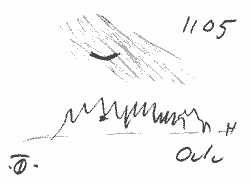 Rovaniemeläinen Olli lähetti minulle kolme valokuvaa 15.11.1999 Rovaniemellä näkyneestä jääsumunäytelmästä. Ohessa on kuvien pohjalta tekemäni piirros (Fig. 10). En ihan usko tuon kaaren näkyvän skannatussa kuvassa niin hyvin, että sitä kannattaisi yrittää UMin sivuille saada näkymään kuvana. Kuvissa on erittäin selvä Moilasen kaari. Muuta huomion arvoista kuvissa on yläkupera Parry ja mahdollisesti myös heikot Lowitzin kaaret, mutta tulkinta jälkimmäisistä jää hiukan epävarmaksi. Toisin sanoen näytelmä muistuttaa hyvin suuresti Rainer Vilkkilän kuvaamaa Viitasaaren näytelmää, josta on ollut juttua paljonkin. Ollin näytelmä kuitenkin häviää kirkkaudessaan Viitasaaren näytelmälle selvästi.