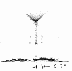 Mikalta tuli jo viime UMia varten kaksi B-lomakkeelle kirjattua erikoista havaintoa. Mikan kirje tuli vain hiukan liian myöhään perille. Ensimmäinen havainto on 6.10.2001 näkynyt keinovalohalo. Tästä oli puhetta sähköpostilistallakin. "Näin eilen illalla yhden kummallisimmista koskaan näkemistäni valoilmiöistä. Tulkitsin sen haloksi. Tarina on seuraavanlainen: vähän ennen klo 21 eilen illalla astelin pihalle. Normaali katsahdus taivaalle, pari tähteä näkyi zeniitin suunnalla, mutta jotain muutakin: soikea, diffuusi läikkä melko tarkkaan zeniitissä, joka näytti pysyvän paikallaan muuttumattomana. Pitempi läpimitta about aste pari, pienempi mitta alle aste. Läikässä näkyi jotain hyvin heikkoa, pilvenomaista rakennetta joka muuttui ehkä hiljalleen. Kirkkautta noin diffuusilta otukselta on vähän heikko arvella, mutta silmiä siristämällä se vaikutti selvästi kirkkaammalta kuin läheiset 0-suuruusluokan tähdet. Taivaalla oli jotain ohutta yläpilveä; kuituja näkyi siellä täällä ja tähden olivat jossain kohdin vähän utuisen oloisia." Kuvassa ilmiö paljastuu kaksiosaiseksi (Fig. 15).