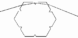 A plate crystal with triangular gaps on each lateral face. These crystals might according to Jarmo Moilanen explain the Saskatoon Display. Possible 44° parhelia ray path is also visible.
