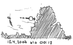 Jarmo Moilanen valitteli Vaalan kelejä. No maaliskuussa on raportoituna kuitenkin kolme tapausta, joissa on zeniitinympäristön kaari mukana. Huhtikuu näyttää muutoin aika harvalta, mutta 14/15. 3. räväyttää taivaat auki varsin kirjaimellisesti. Tähdet ja Avaruuskin hehkutti Jarmon tulipallokameran tallentamaa megalomaanista meteoria, mutta unohti mainita tärkeimmän seikan: tulipallon seurana yläpilvisellä taivaalla kulki myös pätkä 22° rengasta ja sivutulipallo! Huikeaa, käsittämätöntä ja äärimmäisen hulvatonta yhtä aikaa. Tekisi mieleni kirjoittaa myös ainutlaatuista, mutta se ei pidä paikkaansa, sillä haloreports -blogin kommentteihin oli jo ilmestynyt linkki toiseen tapaukseen, jossa kirkas tulipallo aiheutti 22° renkaan (SpaceWeather.com 25.11.2005).