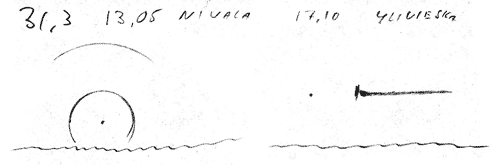 Suunnilleen tässä vaiheessa sähköpostilistalle tulee viesti pohjoisesta. Marko Mikkilä kirjoittaa: ”Täällä pohjois-pohjanmaalla ainoa havainto tälle päivää tähän mennessä on ollut raihnainen 22:n ja satunnainen sivuaurinko.” Ankea on havaitsijan osa, kun tietää, että muualla on rähinä päällä! No, päivän mittaan Nivalassakin paranee, ja lomakkeelta löytyy myös 22° ylläsivuava sekä pitkä 46° rengas (tai ylläsivuava).