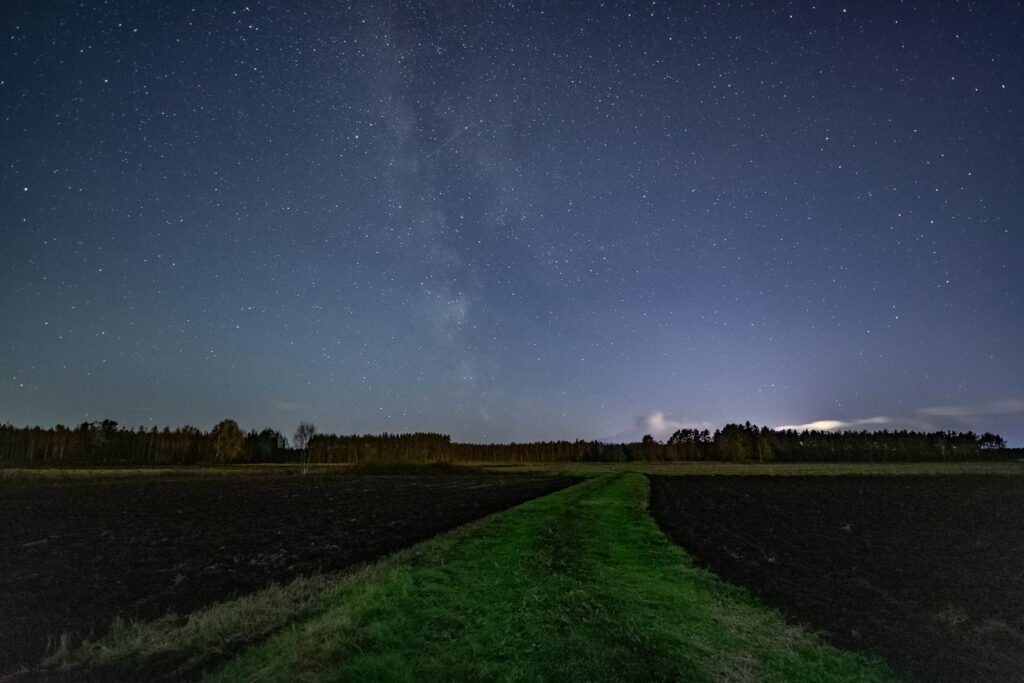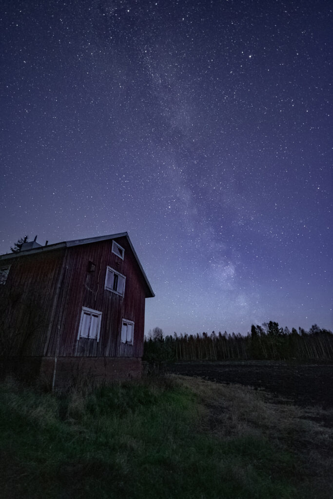 Päätin kävellä pidemmälle peltotietä. Linnunrata näkyi huikean hienosti.