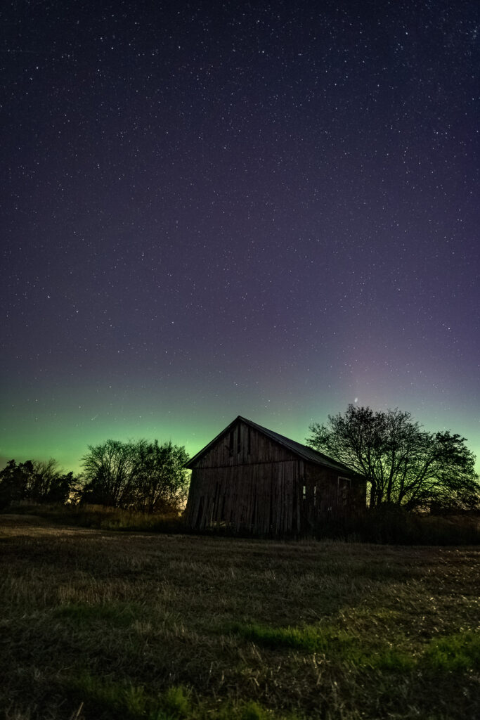 Ajoin tuttuun paikkaan Kaariaisiin Tähdenlennon tilalle. Mielessäni oli parikin sommitteluideaa komeetan (Lemmon (C/2025 A6) suhteen, samoin Linnunrata piti ikuistaa ehdottomasti ennen Kuun nousua. Löysin itseni puoli kahdeksan maissa tilan sisäpihalta. Kaikkialla oli ihanan rauhallista. Nyt kelpaisi uppoutua kuvaamiseen, sommitteluun ja asettaa aivot narikkaan hetkeksi. Ainut miinus illassa oli kohtalaisen kovat tuulenpuuskat, joita tuli pohjoisen suunnalta ja koska ilmansuunta oli pohjoinen, puuskat olivat todella kylmiä. Olin varustautunut päästä varpaisiin pukeutumalla lämpimästi ja kiinnitin erityistä huomiota kolmoishermoalueen suojaukseen. Nyt ei saisi saada kolmoishermokipu-kohtausta tai Hortonin päänsärkyä, leikkaus oli jo niin lähellä. Huomasin, että tuplamaskit, pipo ja huput blokkasivat eritoten ääniä eli tuulen paikottainen ujellus peittyi tyystin, kuten myös muut äänet. En ajatellut asian olevan mitenkään riskitekijä, jota se todellakin tuli olemaan. Heitin kamerarepun jalustoineeen selkääni ja vedin kiinnitysremmit piukalle. Otsalamppuun vielä valoa ja matka peltojen taakse voisi alkaa. Seisoessani tilan ulkorakennuksen kulmalla huomasin, että pellot olikin jo äestetty, joten muutin lennossa kävelysuuntaani. Onneksi taskussani on aina kuvaussuunnitelma numero kaksi. Ja näin ollen uudet sommitteluideat jäisivät ensi syksyksi odottamaan toteutusta.
