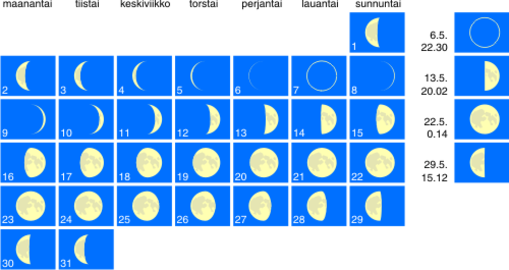Kuun vaiheet, toukokuu ja lokakuu (s. 46 ja 74)