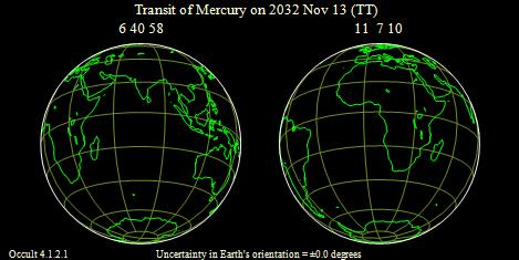 Ylikulku alkaa kello 14.02, on suurimmillaan kello 17.23 ja päättyy kello 20.44. Aurinko nousee kello 5.00 ja laskee kello 21.34. Merkurius nousee kello 5.01 ja laskee kello 21.30. Merkurius kulkee Auringon editse Auringon keskipisteen ja luoteisen reunan puolivälistä, 512 kaarisekuntia keskipisteestä. Ylikulun näkyvyysalue on vuoden 2016 kaltainen.