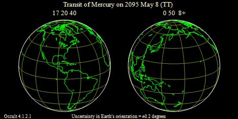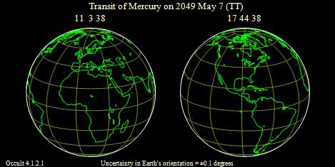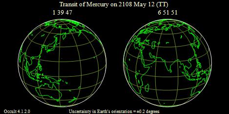 Ylikulku alkaa 10.5. kello 21.15.20, jolloin Auringon ja Merkuriuksen kiekot koskettavat toisiaan. Puolet Merkuriuksen kiekosta on Auringon edessä kello 21.17.07. Merkurius on kokonaan Auringon edessä kello 21.18.57. Merkurius laskee kello 21.39.14. Aurinko laskee kello 21.41.24. Ylikulku on suurimmillaan 11.5. kello 0.37 ja päättyy 11.5. kello 3.57. Aurinko nousee 11.5. kello 4.50.44. Merkurius nousee 11.5. kello 4.55.06. Suomalaisten kannalta havaintomahdollisuudet ovat olemattomat.