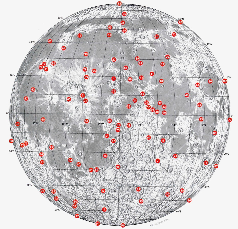 | 57 | Reiner Gamma | 7,7N | 59,2W | 70 | 28 | 5/2022 |