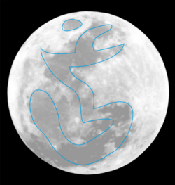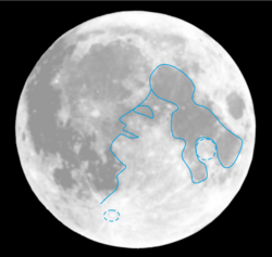 Valkeassa profiilissa Sinus Medii (Keskuslahti) on suuna ja Mare Vaporum (Sumujen meri) silmänä. Sinus Aestuum (Kuumuuden tai Vuoksilahti) piirtää nenän itäisten merialueiden toimiessa hiuksina ja kirkas Tycho-kraatterin alue on kuin kimalteleva kaulakoru. Joskus ylänköalue Mare Nectariksen (Nektarimeren) ja Mare Fecunditatiksen (Hedelmällissyyden meren) välissä nähdään kahtena jalokivenä naisen hiuksissa. Vaihtoehtoisesti kaulakoruna voi toimia myös Cassinin kirkas läikkä vähän Tychosta yläoikealle.