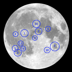 Yhdysvaltalainen tähtitieteilijä William Henry Pickering (1858–1938) laati 1900-luvun alussa listan kahdestatoista Kuun pinnan kohteesta. Kohteet on numeroitu vaikeusjärjestyksessä 1–12.