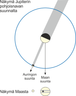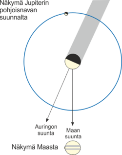 | Jupiterin korkeus | Jupiterin korkeus horisontista tapahtumahetkellä (Helsingissä 60° N ja 25°E) |