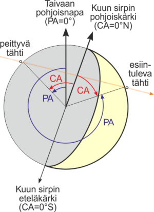 Peittyvän tai esiintulevan tähden tapahtumapaikka ilmoitetaan yleensä suuntakulmien PA ja CA avulla.