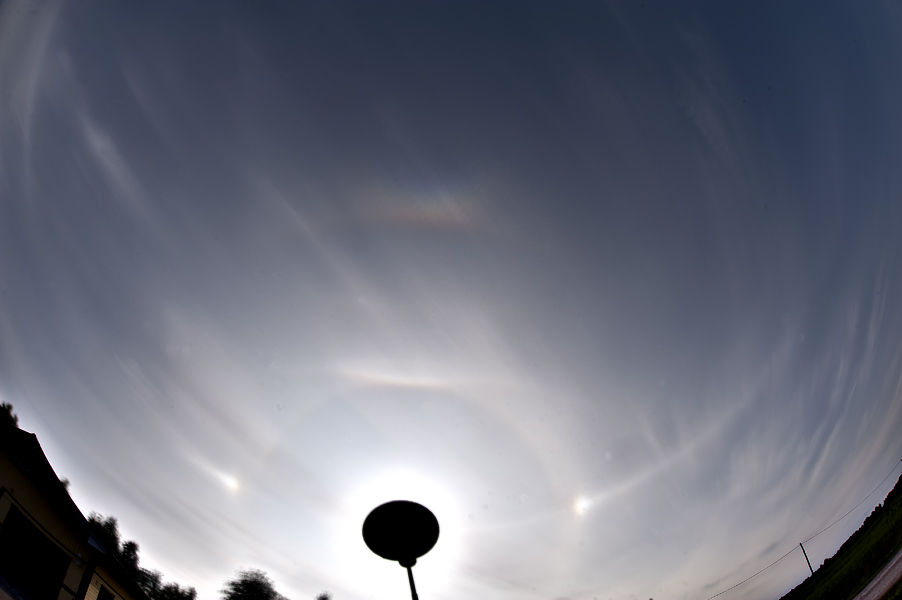 Kuvan selitys: Marko Mikkilän Nivalassa 8.7.2013 kuvaama halonäytelmä Auringon ympärillä.
