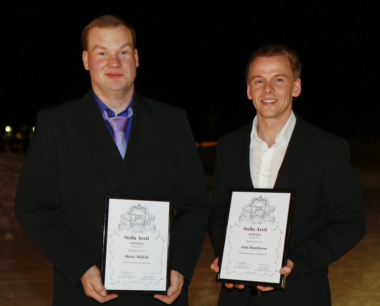 Kuva 1: Stella Arcti -palkitut tähtiharrastajat Marko Mikkilä (vasemmalla) ja Antti Henriksson. (Kuva Ursa) jpg
