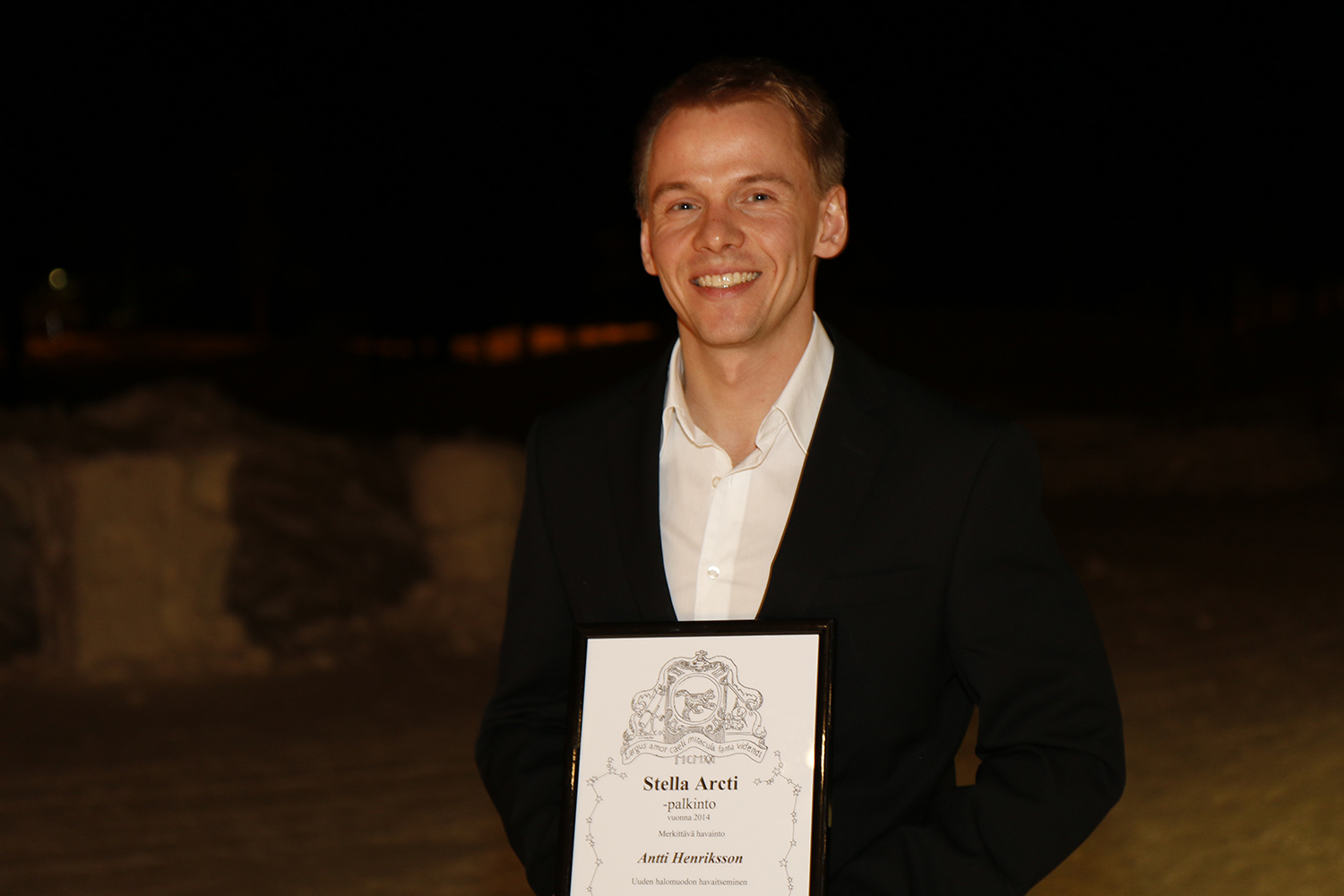 Vuoden 2014 Stella Arcti -palkinto myönnettiin Antti Henrikssonille ennen täysin tuntemattoman haloilmiön havaitsemisesta. Kokenut luontokuvaaja oli nähnyt haloilmiöitä aiemmin vain ohimennen, muttei ollut kuvannut niitä koskaan. Henriksson oli palaamassa lomamatkalta Lapin tuntureilta ja ajamassa Kittilän ohi, kun taivaalle alkoi muodostua jatkuvasti kirkastuvia haloja. Halot aiheuttivat jääkiteet, joita paikallisten laskettelurinteiden lumettaminen nosti ilmaan. Henriksson pysähtyi valokuvaamaan niitä.