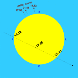 | Helsinki | 46° | 25° | ei näy (-1°) |