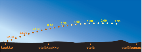 | Täydellinen vaihe alkaa | klo 22.30 |