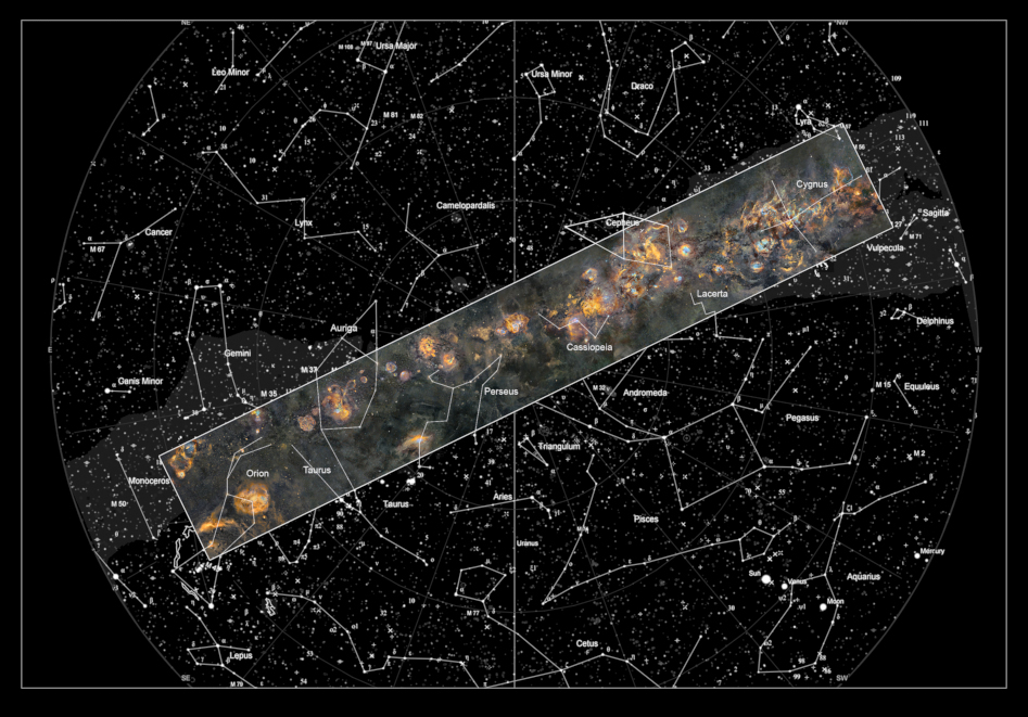 Kuva 3. Linnunratamosaiikin sijainti pohjoisella tähtitaivaalla. jpg