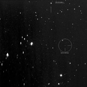 Kuva 1. Asteroidi Tähtiseuraursa (6073) kuvattuna Ursan havaintokeskus Tähtikalliolla vuonna 2019. Asteroidi on merkitty ympyrällä kuvan vasermmassa laidassa. Kuva otettiin osana Suomi 100 asteroidit -projektia, jossa valokuvattiin kaikki Suomessa löydetyt asteroidit.