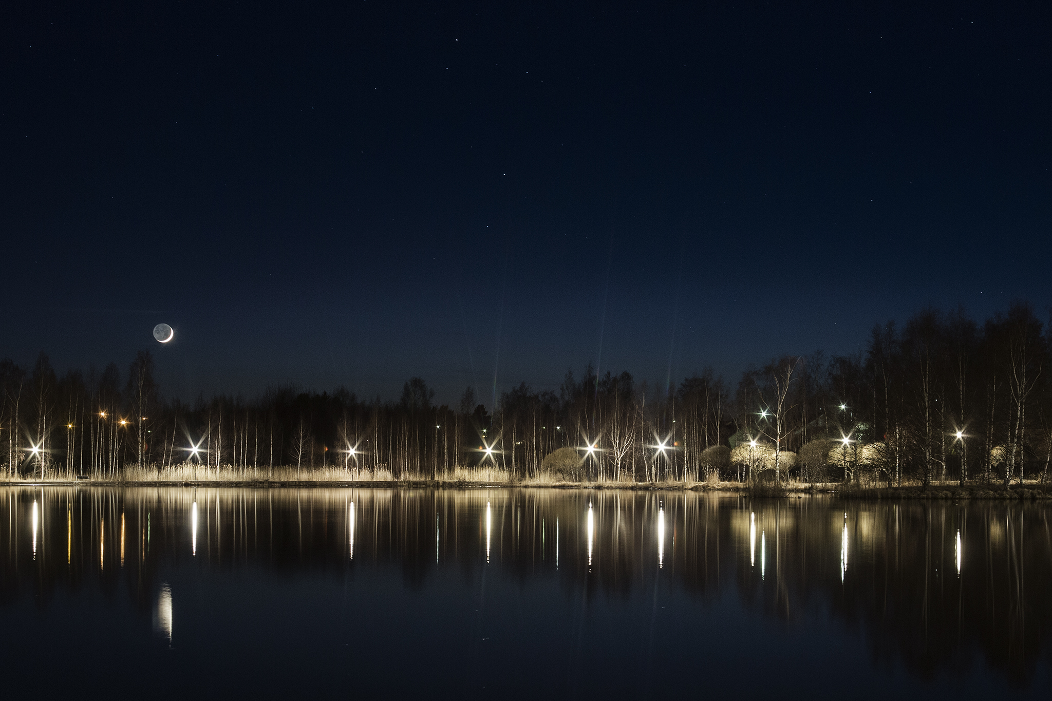 Kuva 1. Nuori kuunsirppi Uudessakaupungissa kuvattuna.