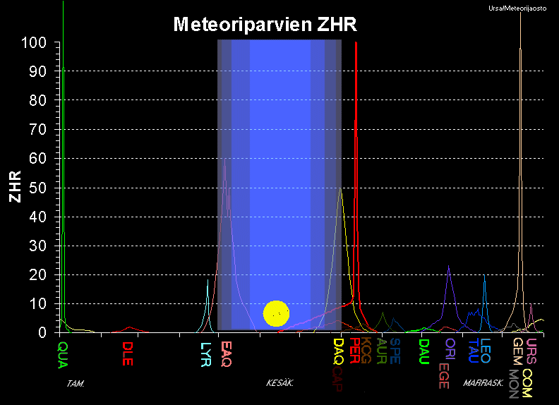 Taulukko 10. Radianttien paikat vuoden eri aikoina.