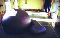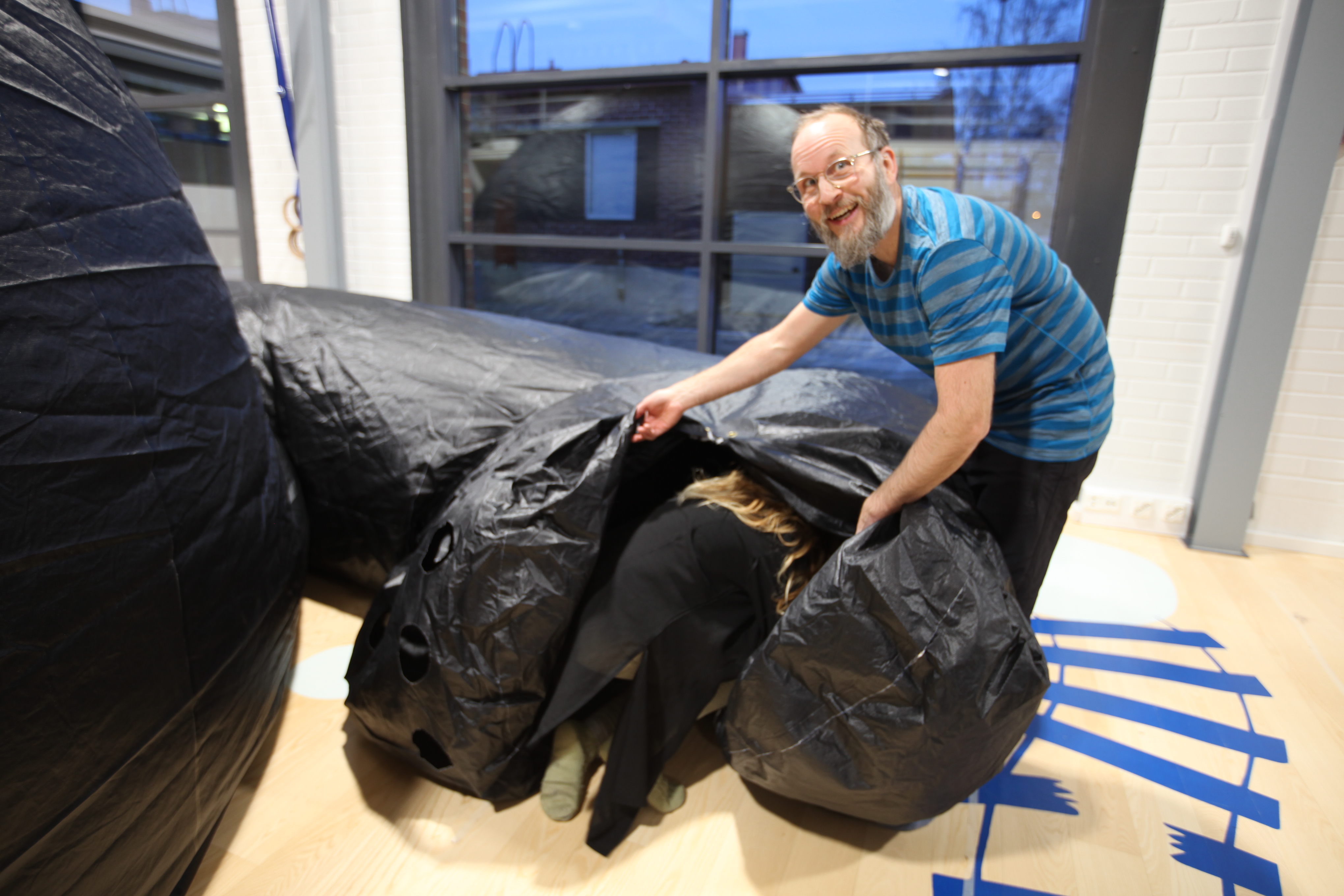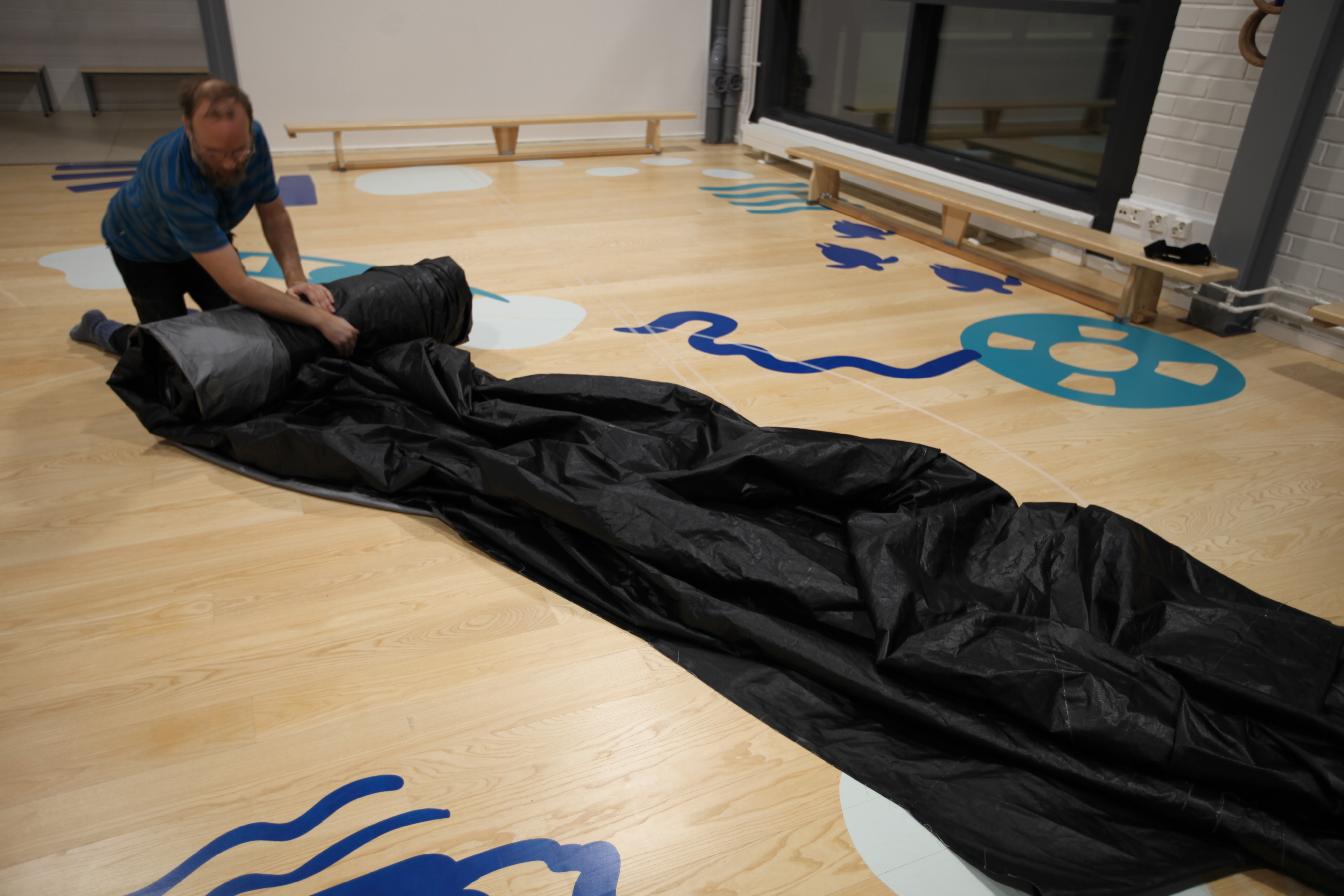 | Planetaarioon ryömitään sisään putkea pitkin.