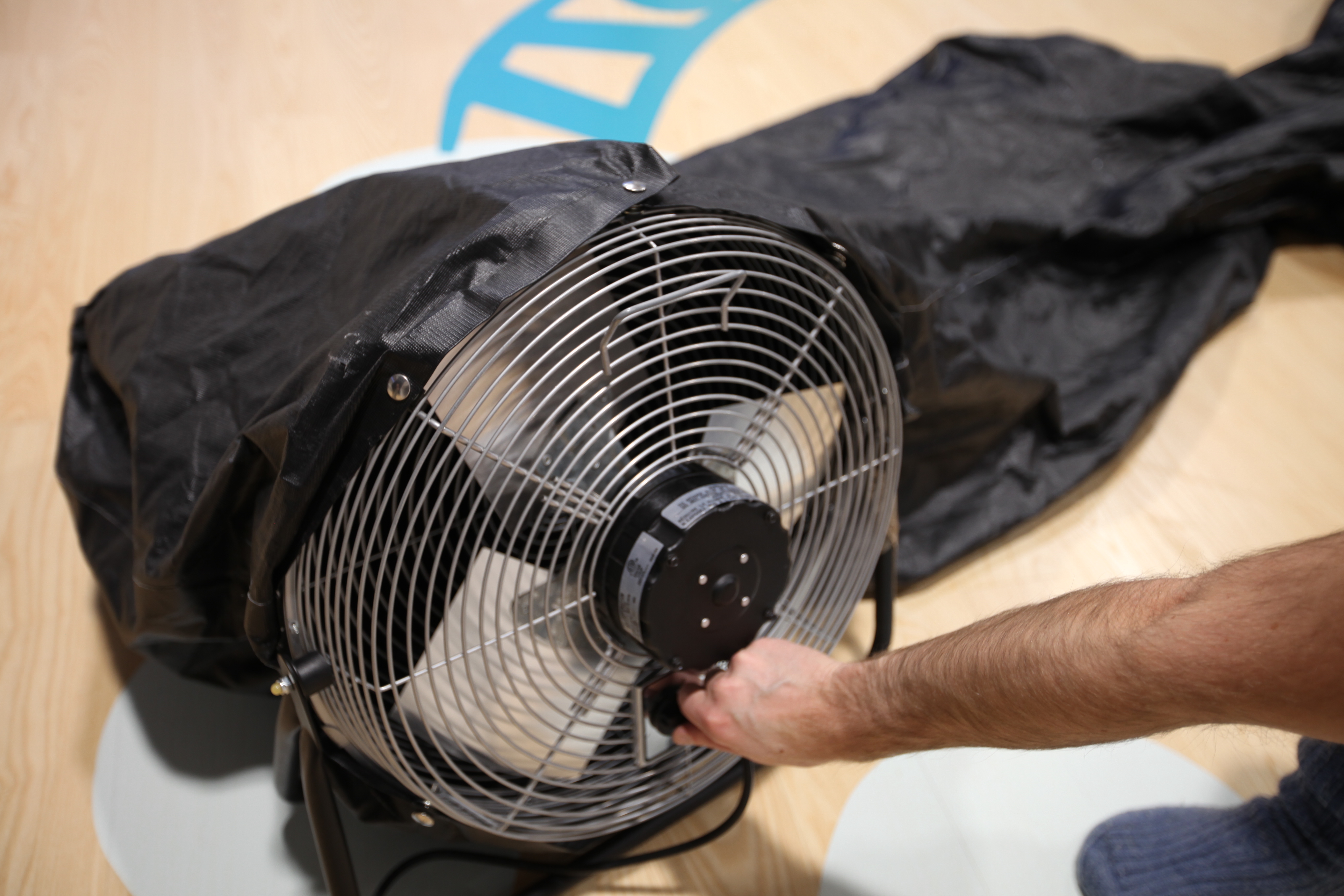 Puhaltimen voimakkuuden säätö on puhallinlaitteen takaosassa.