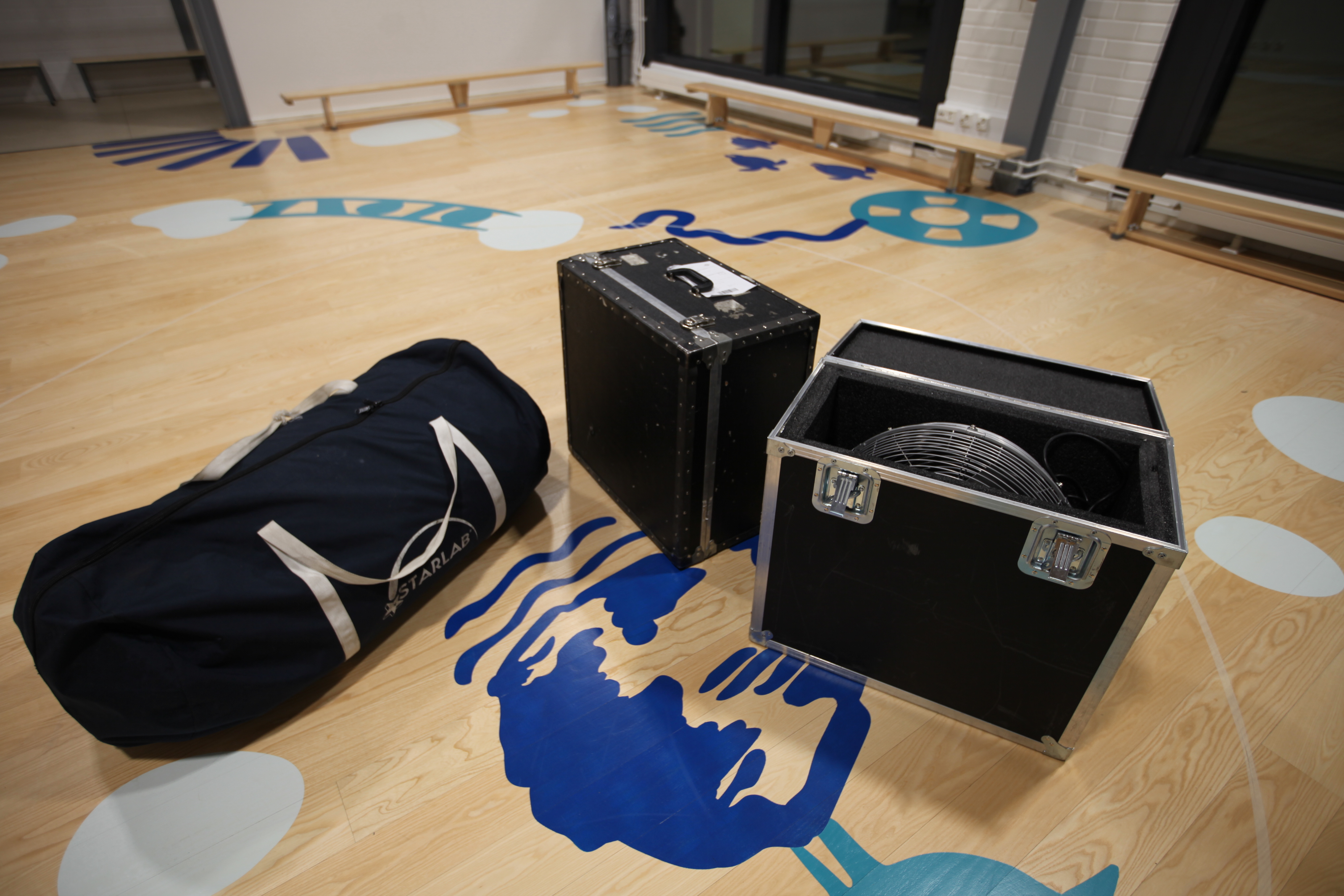 Planetaario kuljetetaan laukkuihin pakattuna.