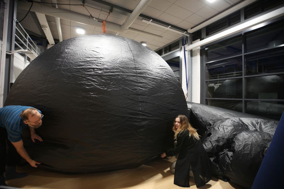 Täytetty planetaario mahtuu hyvin esimerkiksi juhlasaliin.