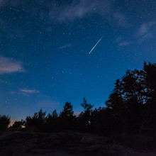 Kuva 1. Perseidien tähdenlento maiseman yllä kuvattuna Inkoossa vuonna 2018 jpg